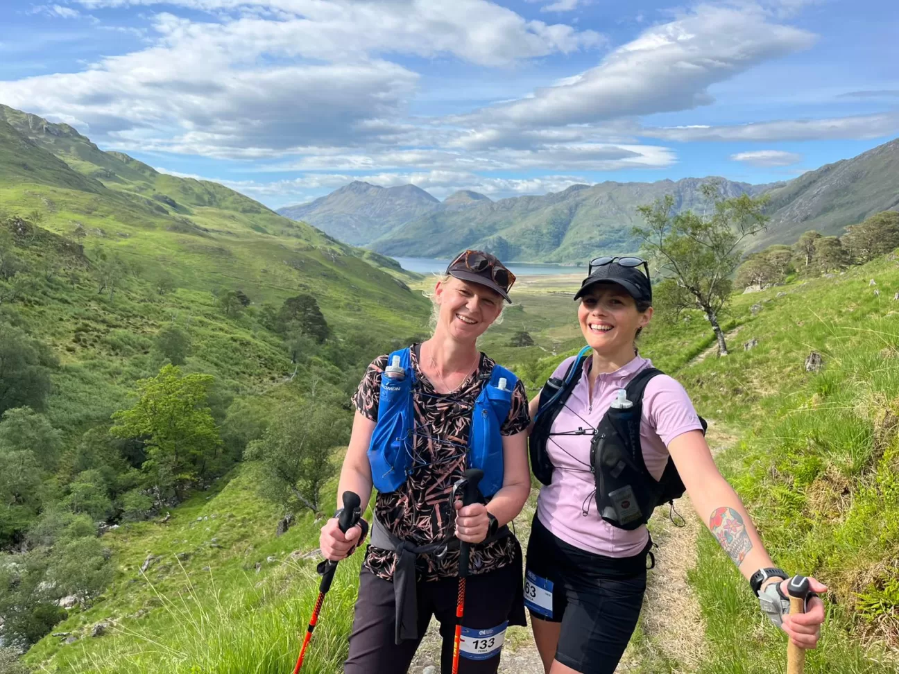 While Petra and I had never met in person before the race, we started chatting on social media last winter after realising we had booked the same sleeper train to Scotland (hence bonding from the get go over a lack of sleep). We quickly discovered that we live fairly close to each other, we are both professionals, we’re the same age, we’re both comfortable with long stretches of silence… and somehow owned the exact same set of camping cups and cutlery. The similarities, however, pretty much ended once it came to experience. Petra, a seasoned endurance runner, had her act together from the start. It’s thanks to her, and to fellow TGR member Fiona, that I am not still stuck at the top of a waterfall trying to figure out where the path went.